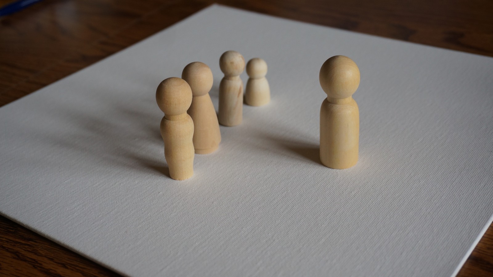 Finally, my discomfort forces me to take action. I take out The Circle Tool and turn it to the blank side. I choose a representative figure for myself and one for her. As soon as I set these two "people" on the board, a certain calm comes over me.